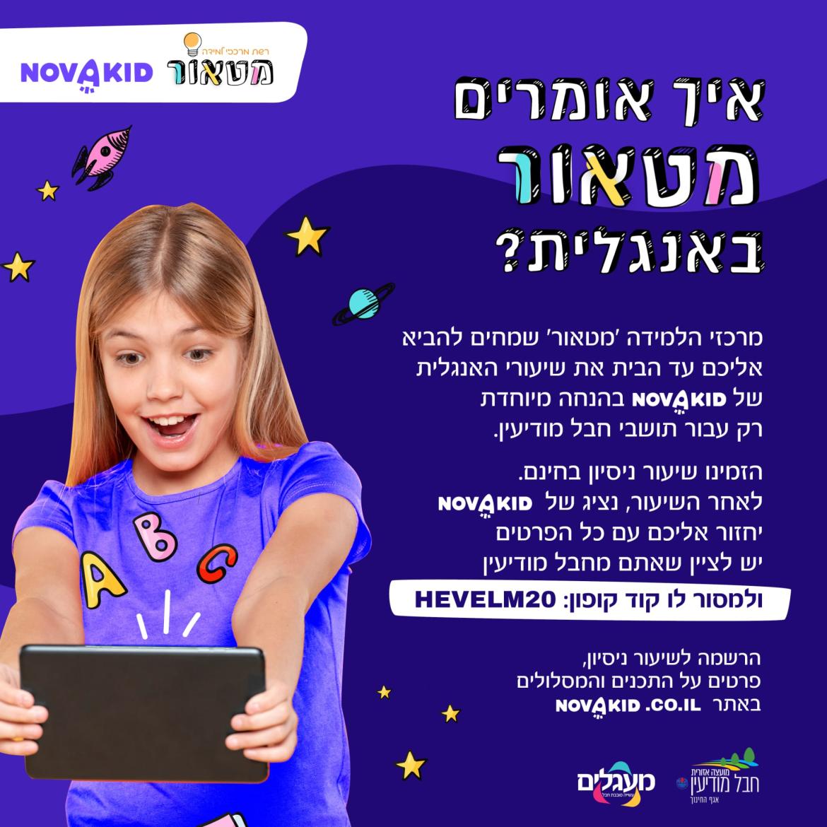 מרכזי הלמידה מטאור שמחים להביא אליכם עד הבית את שיעורי האנגלית של נובהקיד בהנחה מיוחדת - רק עבור תושבי חבל מודיעין.